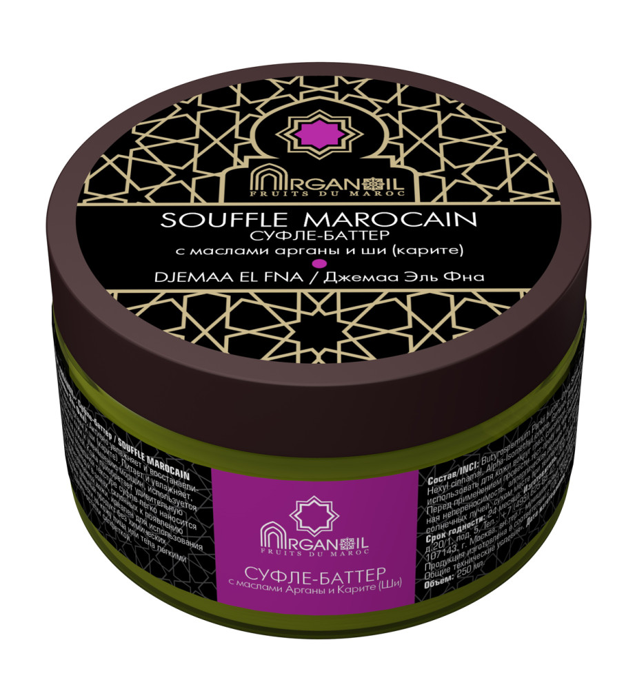 Суфле-баттер (взбитое масло карите с маслом арганы) марки ARGANOIL FRUITS DU MAROC Уд- Марокканский мандарин активно увлажняет и восстанавливает кожу благодаря комплексу ухаживающих масел карите (ши) и арганы.