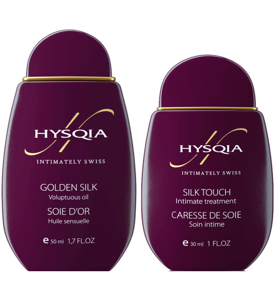 Hysqia Intimate Set 3 / Набор для интимного ухода: Масло для тела "Золотой Шёлк" и Увлажняющая эмульсия "Прикосновение шелка", 50 мл + 30 мл
