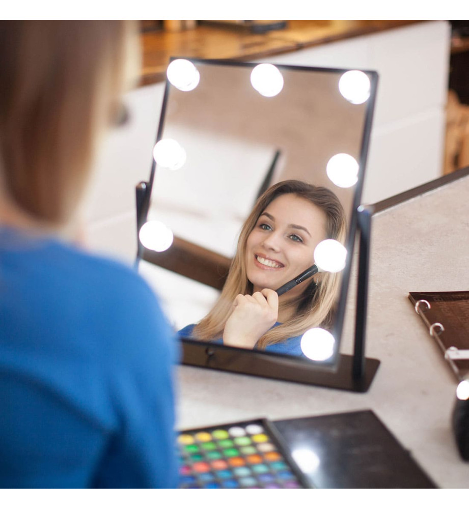 Профессиональное косметическое зеркало для макияжа uLike Maestro с подсветкой из 9 ламп. Идеально подойдет для профессиональных гримёрок, студий, салонов красоты. Это зеркало можно использовать и в домашних условиях, чтобы создать профессиональный макияж.