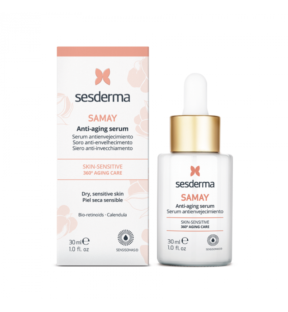 Сыворотка антивозрастная SAMAY специально разработана для чувствительной кожи и кожи склонной к раздражению. В дополнение к омолаживающему действию активные вещества восстанавливают защитный барьер, увлажняют и успокаивают кожу. Уникальная формула заключена в микроскопические капсулы Sensisomas, которые улучшают проникновение активных ингредиентов без раздражения чувствительной кожи.Средство содержит био-ретиноиды и вводится в уход постепенно, с 2-х раз в неделю до ежедневного применения.